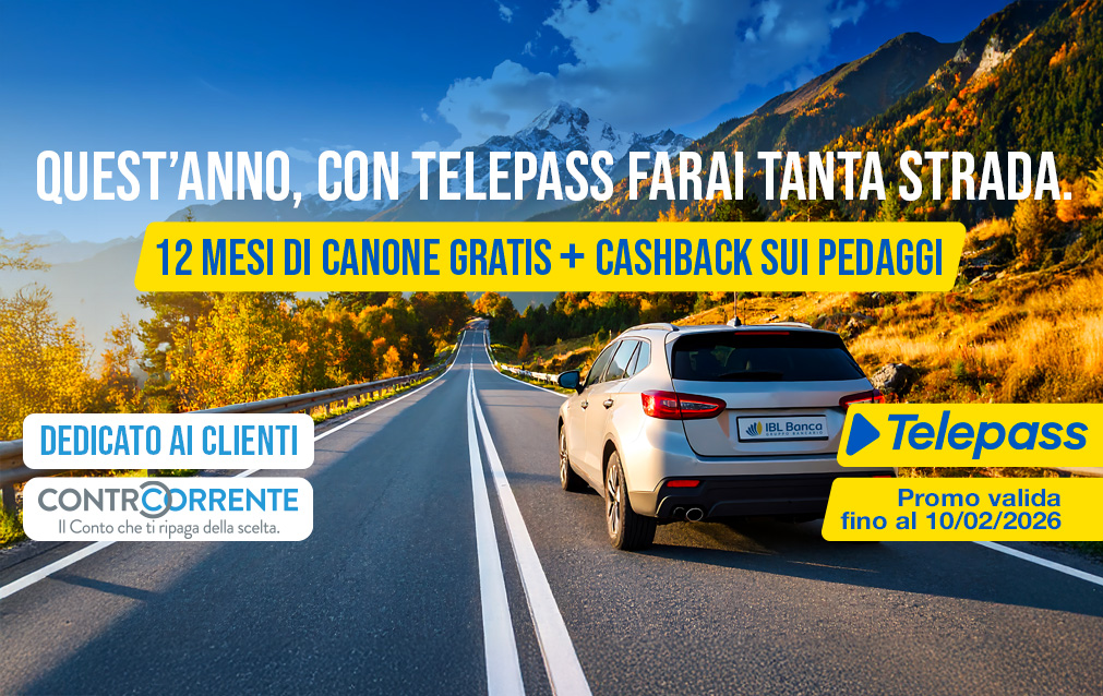 Tra viaggi per le feste, rientri in famiglia e weekend fuori porta, questo periodo porta con sé tanti spostamenti. Per muoverti senza pensieri, approfitta della promozione dedicata ai clienti ControCorrente che richiedono Telepass Family (l’offerta base di Telepass) nelle filiali IBL Banca entro il 10 febbraio 2026: