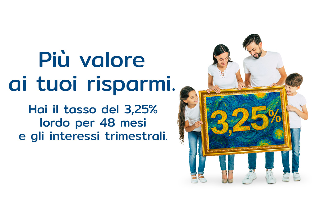 - 3,25% sulle somme depositate per 48 mesi (liquidazione degli interessi trimestrale);