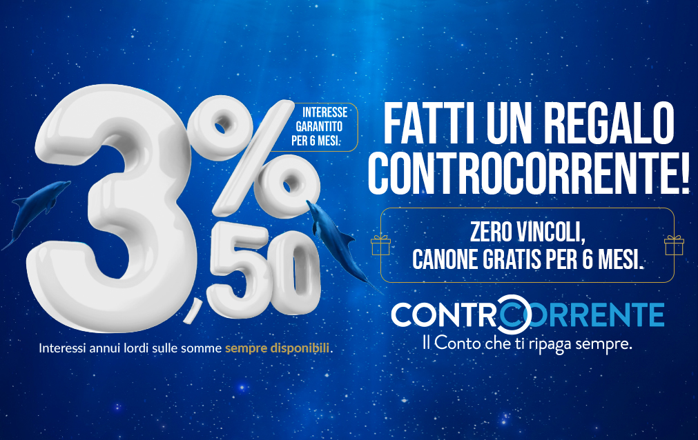 4 dicembre 2023 - Salgono al 3,50% gli interessi sulle somme libere per chi apre il conto ControCorrente.