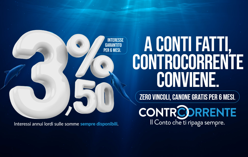 17 gennaio 2024 - Apri ControCorrente, per te: remunerazione sulla liquidità, operatività bancaria completa e tanta convenienza.