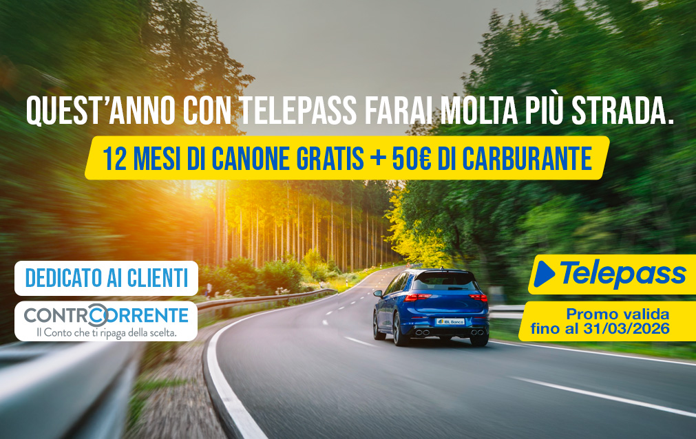 11 febbraio 2026 - Più strada, meno spese: con ControCorrente hai Telepass gratis per 1 anno + 50€ di carburante.